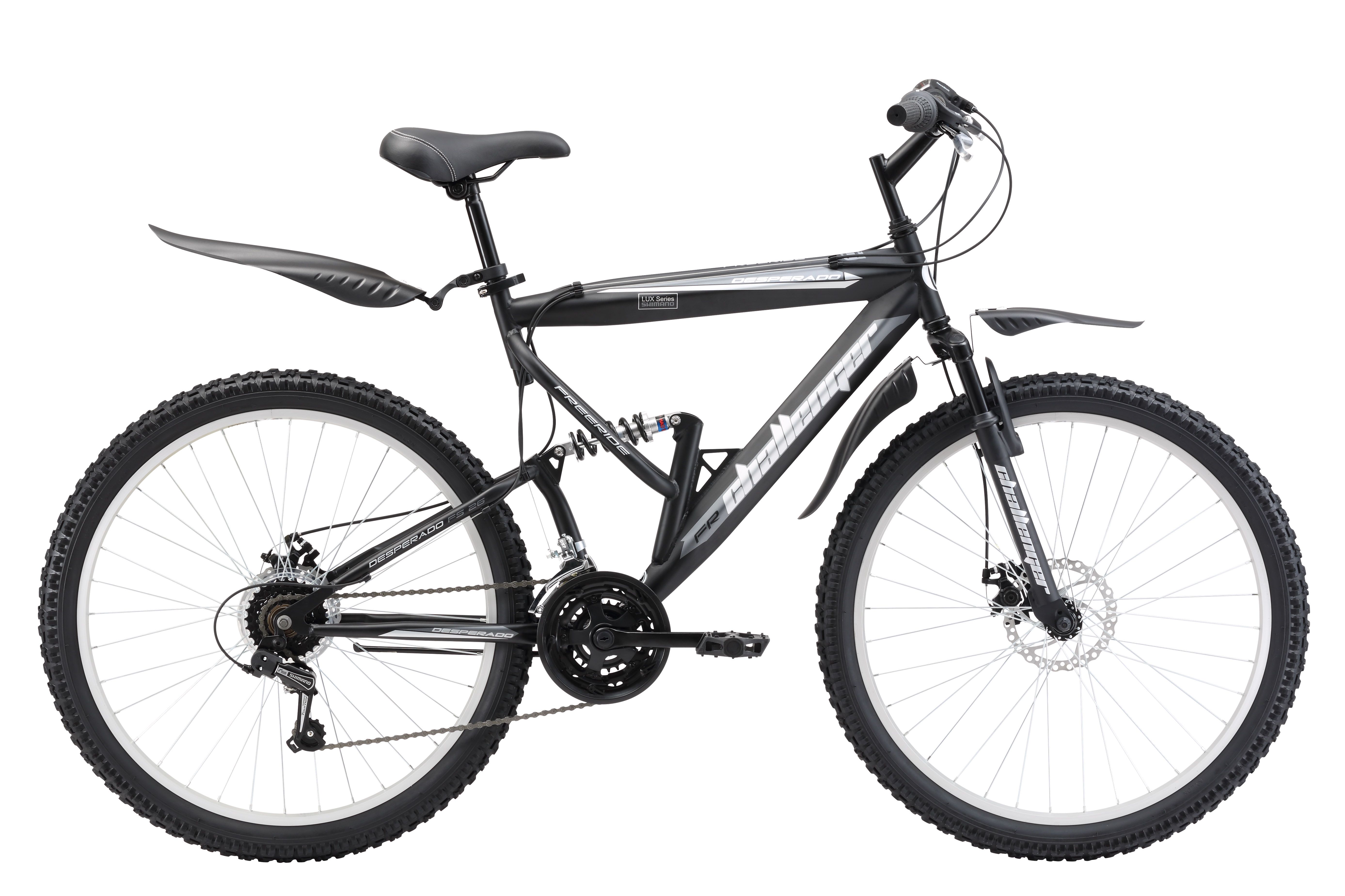 Велосипед двухподвес Challenger Desperado Lux FS 26 D на стальной раме отлично подходит для прогулочного катания и поездок на природу Передняя и задняя подвески оборудованы пружинными амортизаторами, которые смягчают удары от дорожного покрытия. Велосипед оснащён дисковыми механическими тормозами, которые хорошо служат на бездорожье. Трансмиссия велосипеда имеет 18 скоростей, что позволяет подобрать оптимальную нагрузку, с помощью переключателей Shimano. В комплекте с велосипедом идут пластиковые крылья и подножка, что делает велосипед Challenger Desperado Lux FS 26 D ещё комфортнее.