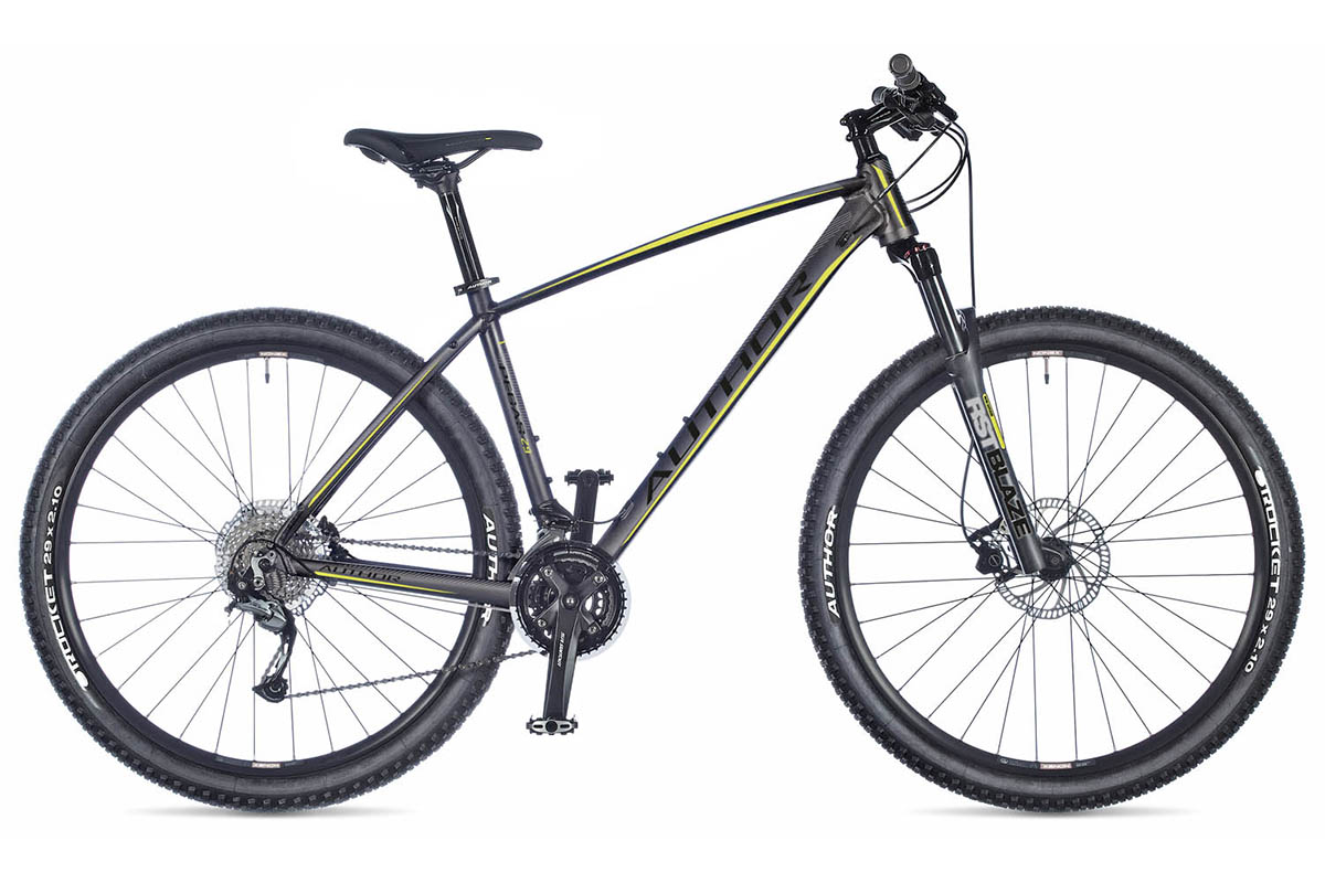 Год 2019 Возможные размеры 17", 19", 21" Модель рамы hydroformed alloy 6061 29" Задний амортизатор - Рулевая колонка AUTHOR Integrated 1.5" tapered Ведущие звезды SUNTOUR XCM 40-30-22 teeth 170 / 175 mm cranks Каретка SUNTOUR XCT cartridge Вилка RST Blaze 29 TnL oil, lock out (100 mm) Передний переключатель SHIMANO Alivio (34.9) Задний переключатель SHIMANO Acera Манетки SHIMANO Acera (27) Кассета SHIMANO HG200-9 11-34 (9) Цепь KMC Z9 Втулки QUANDO Disc 32 holes Тормоза TEKTRO Auriga disc hydraulic (7" rotors) Тормозные ручки TEKTRO Auriga Обода AUTHOR Xenon 29 32 holes Спицы black steel Покрышки AUTHOR Rocket 29" x 2.10" Педали AUTHOR alloy Руль AUTHOR Flatbar 9° 700 mm Грипсы AUTHOR Pro Lock Вынос AUTHOR alloy Подседельный штырь AUTHOR alloy (31.6) Седло AUTHOR Navigator Скоростей 27 Вес 15.3 kg -